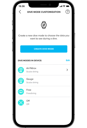 Choose your preferred display style and what dive information you want to see. Edit your existing dive modes or create your own.